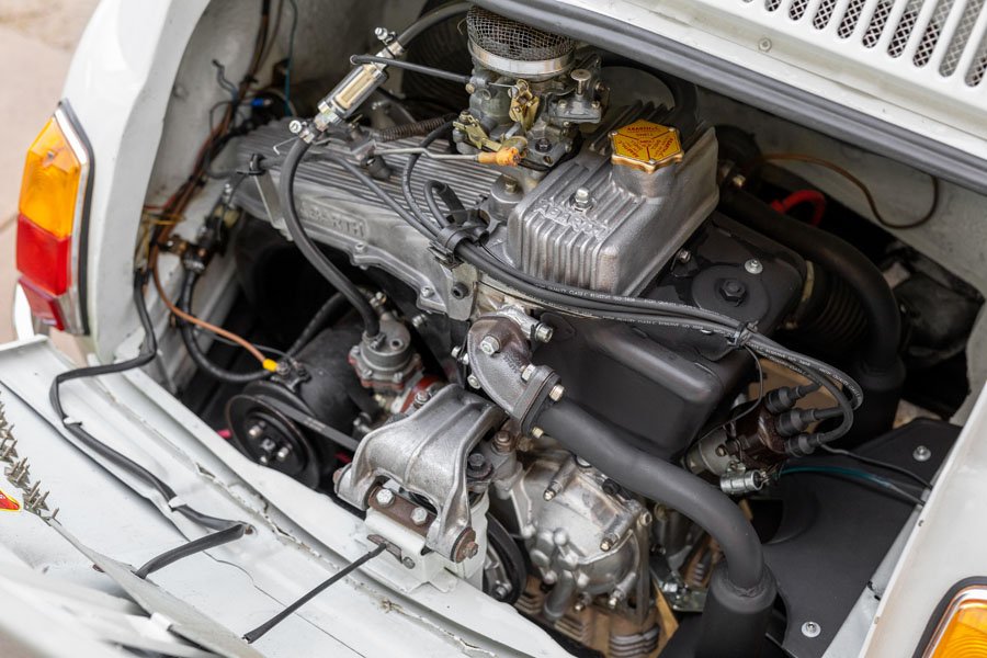 Thanks to a 76mm bore and stroke, the 695 SS displaced 689cc which ensured eligibility for the under 700cc Touring category in which it went on to excel. To optimise performance, Abarth fitted each engine with special pistons and camshafts, uprated carburettors, a new sump, Abarth valve covers, a higher compression ratio and a sports exhaust. Fat little wheels, new gauges, a small diameter steering wheel and special badges were also part of the package.