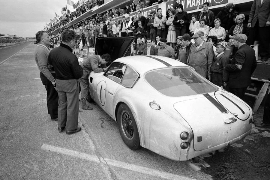 0180/L was acquired for Kerguen’s attack on the 1961 Le Mans and debuted at the event’s annual test weekend on April 8th and 9th where it posted ninth fastest time. The Aston ended up as second fastest Grand Touring car (a works Ferrari 250 GT SWB Berlinetta had been quickest) but fastest of the four-litre GT class runners.