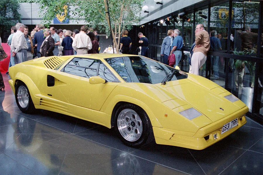 KLA12879 was sold again in 1996 and 1999. By the summer of 1999, it had been re-registered 123 FAB and equipped with a rear spoiler. The yellow Anniversary became a regular at Lamborghini club events and the Silverstone Historic Festival.