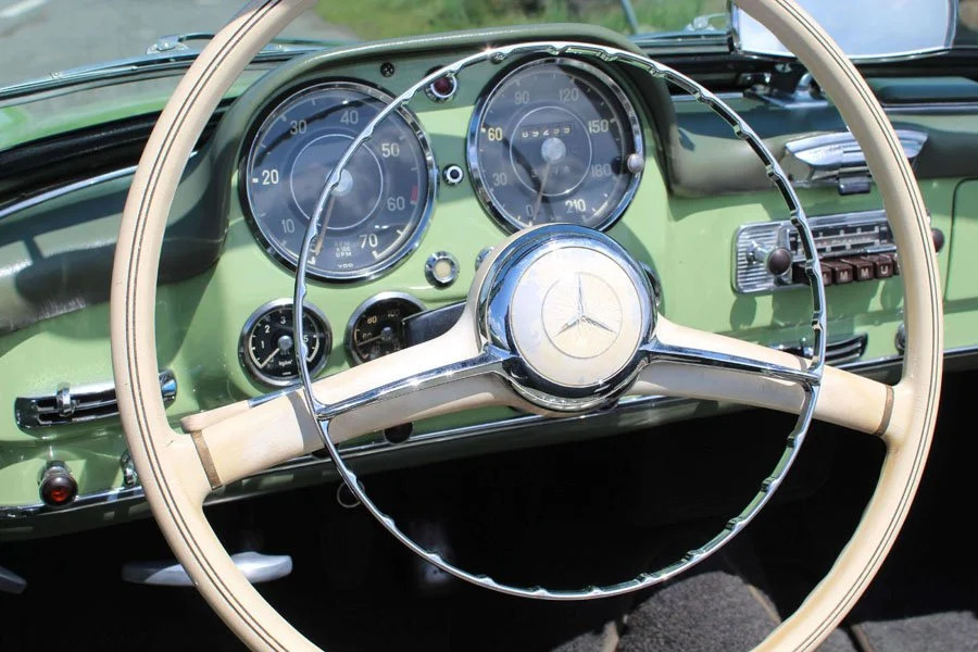 Configured in the rarely seen colour scheme of Light Green paint with Green leather upholstery and a matching Green soft top, chassis 121.042-8.502.568 was purchased new in Caracas, Venezuela, during March 1959. The buyer, a 25 year-old American lady, then took the car with her when she relocated to California in 1961 and retained it until her death in 2018.