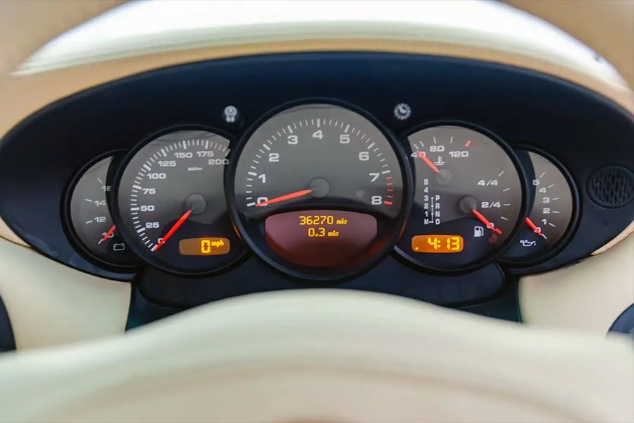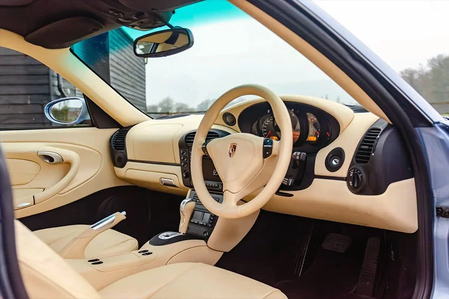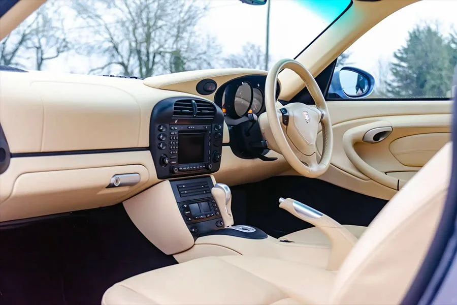 Uniquely, chassis WP0ZZZ99Z4S605115 was the only 996 4S that emerged from Porsche’s Exclusive department wearing this handsome shade of Horizon Blue Metallic paint. Inside, the alcantara roof lining and carpets were black while almost every other surface to include the centre console and steering wheel got covered in cream leather.