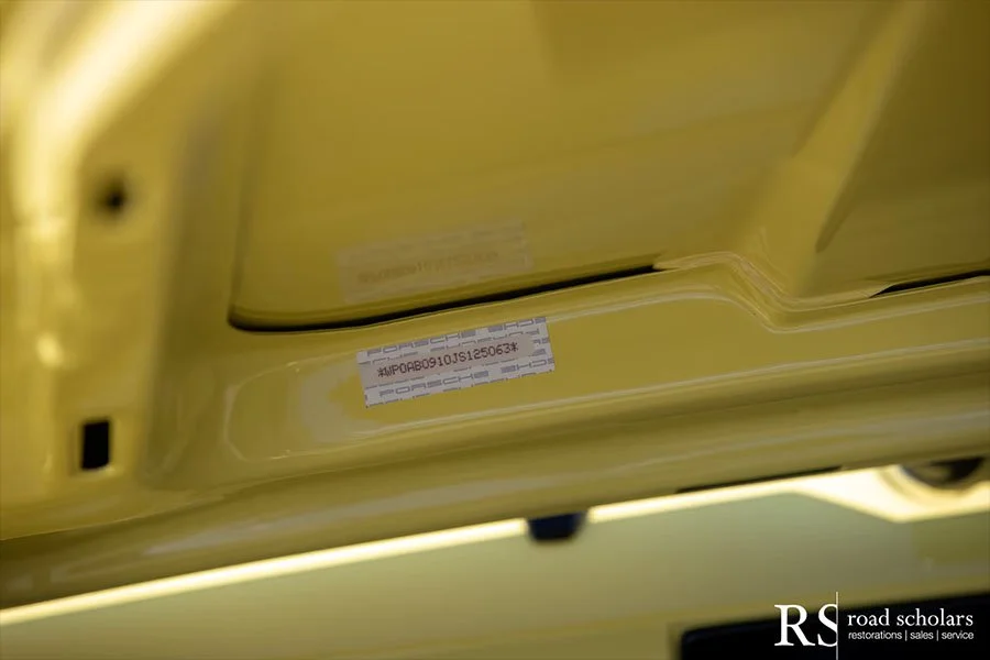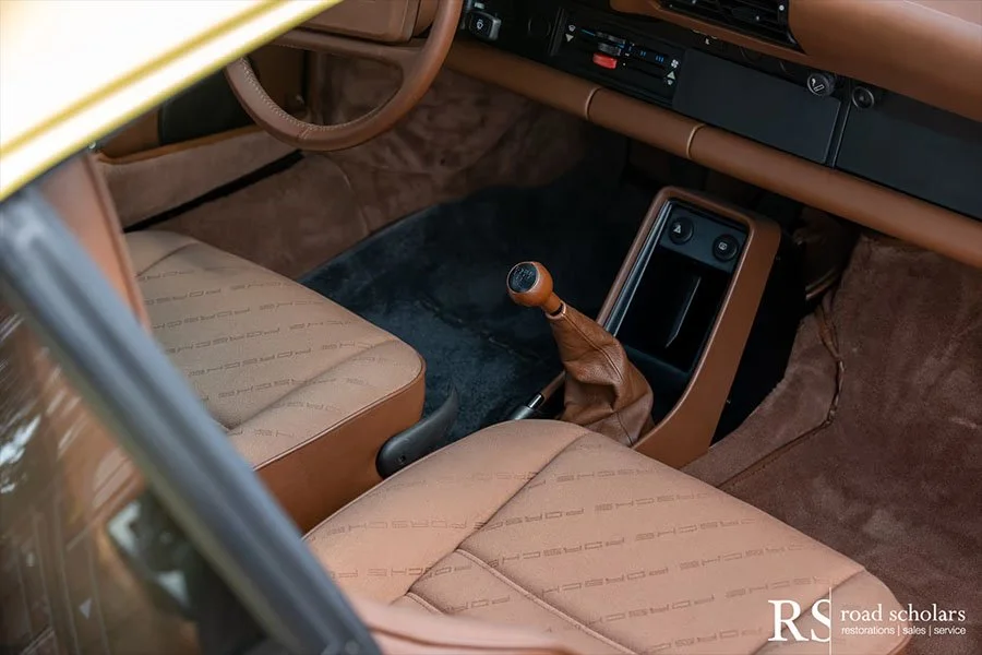 Jackson ordered this Club Sport, chassis WP0AB0910JS1250, in the unique colour combination of Summer Yellow with Mahogany upholstery. Delivered in 1988, the car was subsequently preserved in ‘as-new’ condition alongside some of the most significant Porsche road and race cars in history.