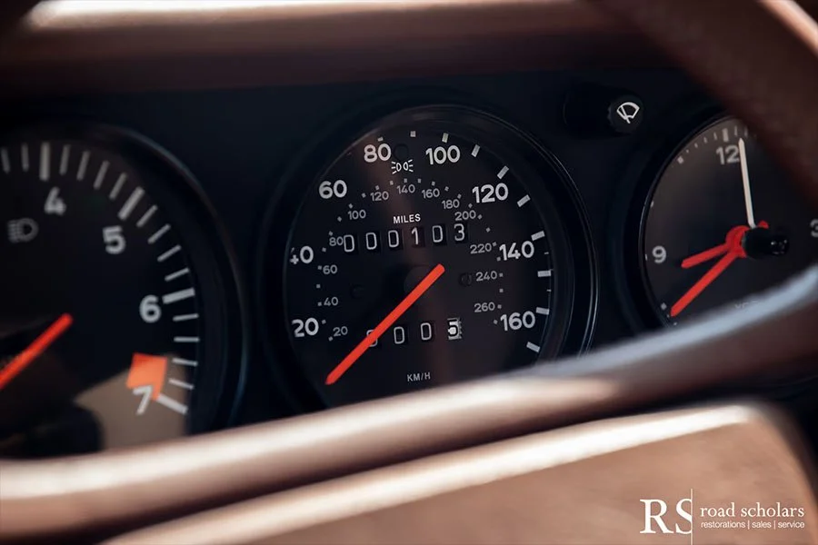 According to Road Scholars, at whose showroom in Durham, North Carolina, the car currently resides: “the interior shows no wear of any kind, and the odometer shows just 103 miles. The finishes on the hardware in the engine bay are perfectly preserved with no signs of oxidation or corrosion, and even the VIN number sticker affixed to the transmission is in pristine condition.”