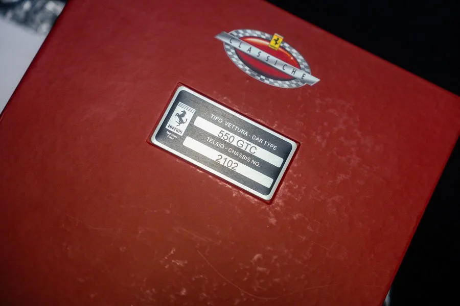 Following its acquisition by a new owner in 2017, chassis 2102 was sympathetically restored back to its 2003 Spa livery while the engine and gearbox were rebuilt. In March 2021, the 550 GTC, which retains its matching-numbers chassis, engine, and gearbox, was awarded Ferrari Classiche certification.