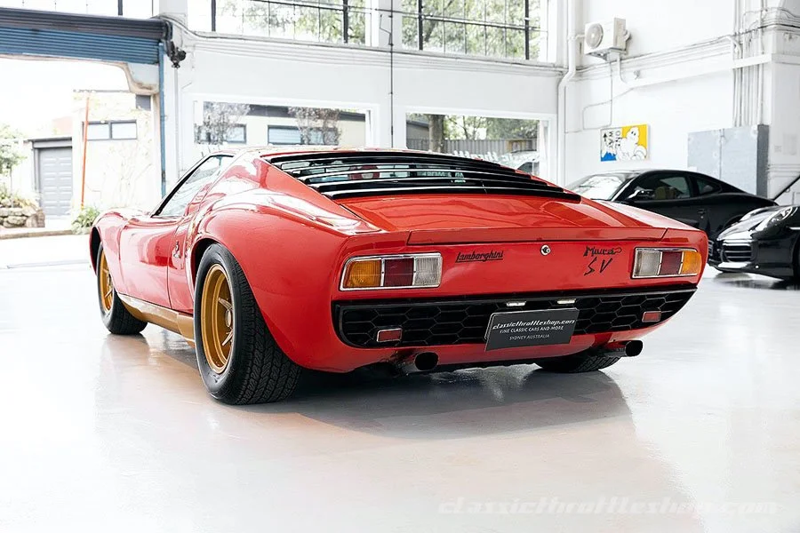 Currently on offer at the Classic Throttle Shop in North Sydney is SV chassis number 5002 which was one of two new cars purchased in Italy by the Australian Lamborghini distributor, Peter Mitchell, and then sent back to the factory for conversion to right-hand drive.