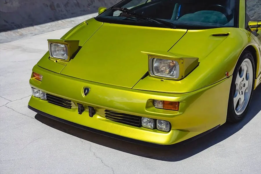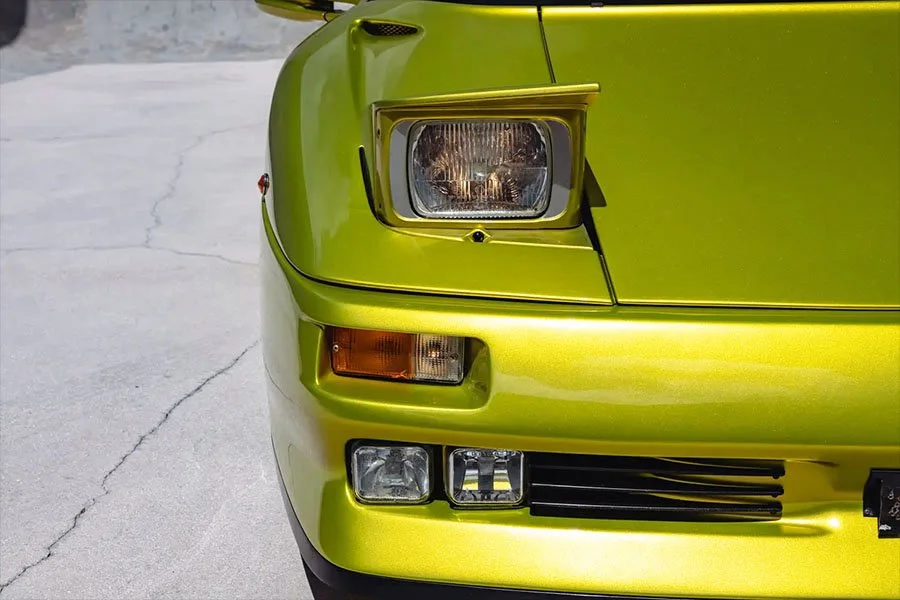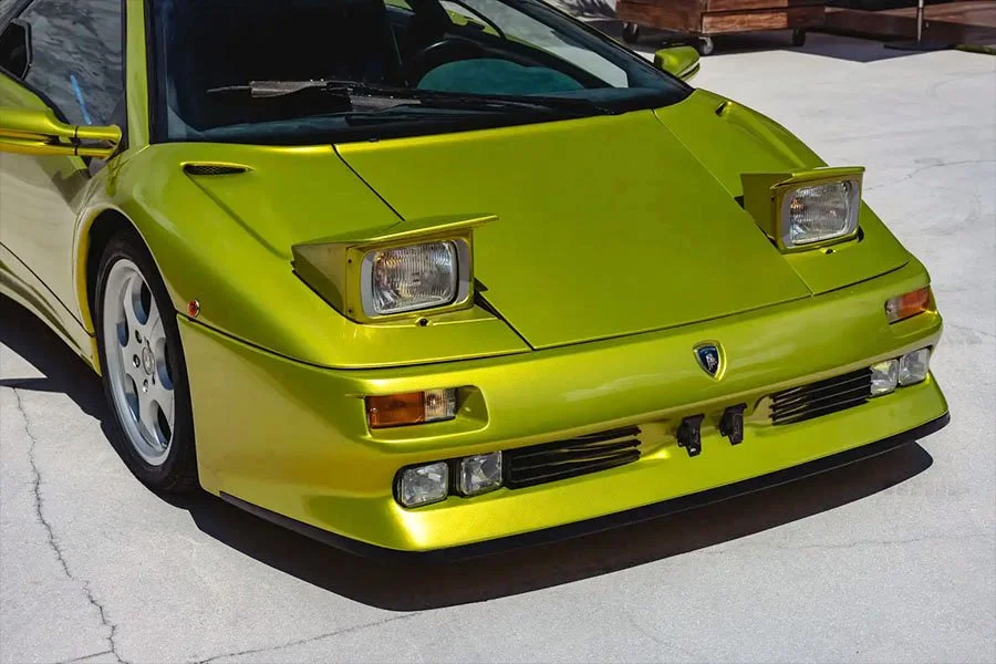 Ultimately, a more practical configuration with a full height screen and detachable targa-style roof panel was adopted for the production Roadster that emerged in late 1995. However, a couple of customers who had seen the extraordinary prototype decided to configure their Diablos in the same spectacular light pearlescent acid green paint that had adorned the original Geneva Salon car.