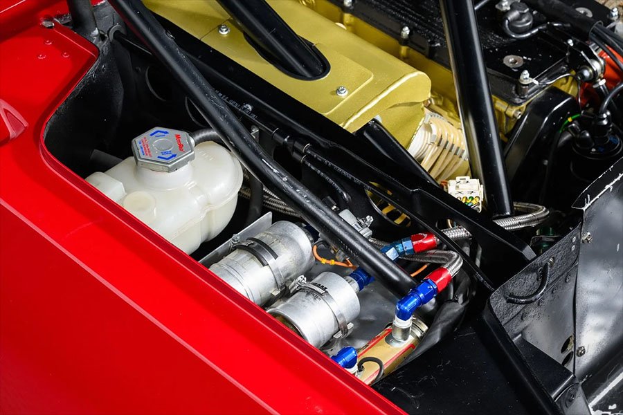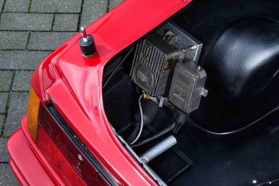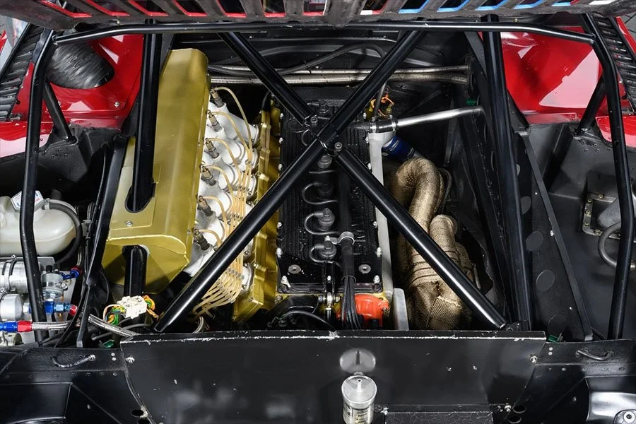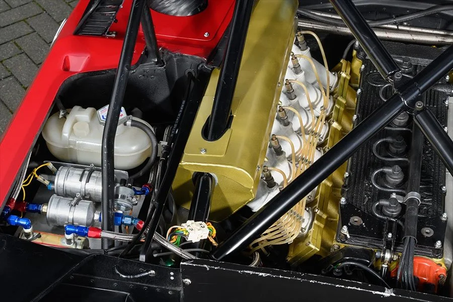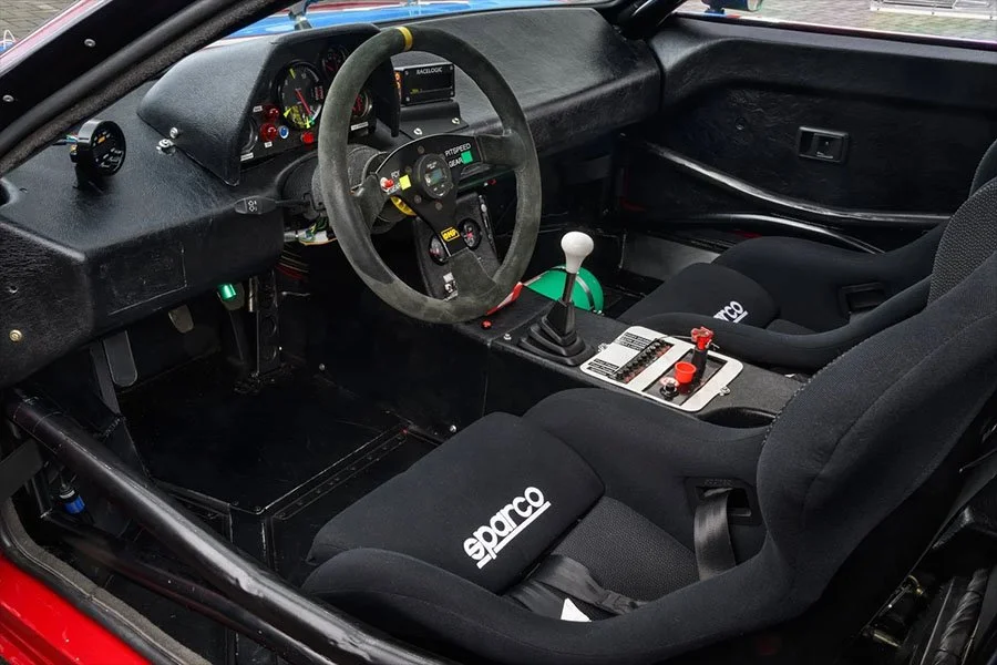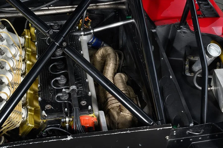 Today, the car is back on its 16-inch racing wheels and wears the red livery used by Crevier during the 1981 IMSA season. Chassis 4301195 is accompanied by two sets of spare 16-inch racing wheels, the road-usable 18-inch wheels mounted with fresh Michelin tyres and the original racing springs / dampers that meet the FIA’s HTP requirements.