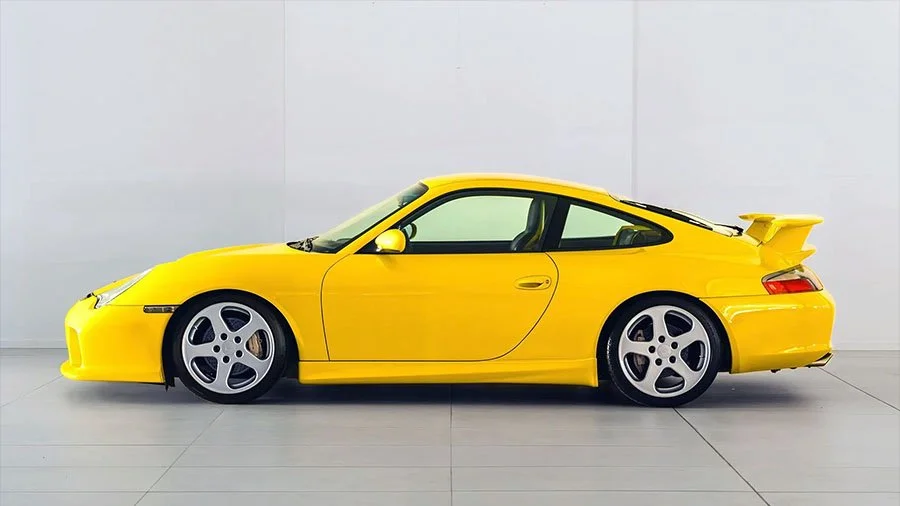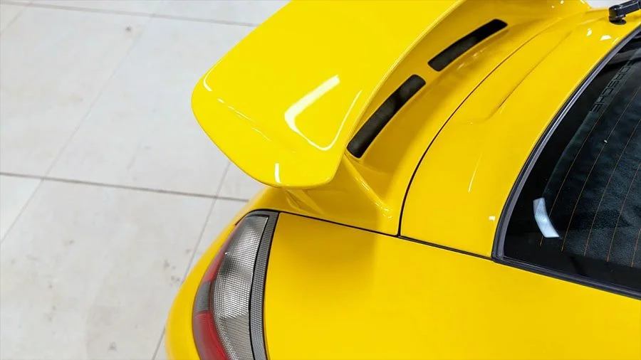 Chassis WP0ZZZ99Z3S605887 started life as a non-sunroof 2003 911 3.6 Carrera Coupe equipped to a very high specification. Configured in Speed Yellow with Black upholstery, ‘605887’ was optioned with an array of desirable upgrades to include the X51 Power Kit, Aero Kit, Sport suspension, heated Sports seats with body coloured backs, Yellow seatbelts, Yellow instrument faces and a Yellow centre console.