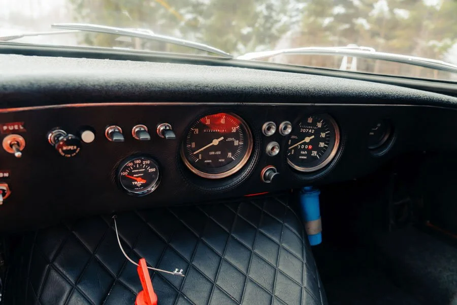 During its life, Bizzarrini fitted the car with an array of high performance features to include Weber carburettors, P538-type rack and pinion steering, a short 3.54:1 final drive ratio, bronze instead or rubber suspension bushes and an adjustment system for the De Dion rear axle. A variety of extra cooling solutions were carved from the body which, to accommodate wider 9.5-inch rear wheels, also had its rear fenders flared.
