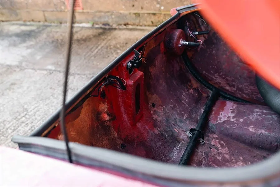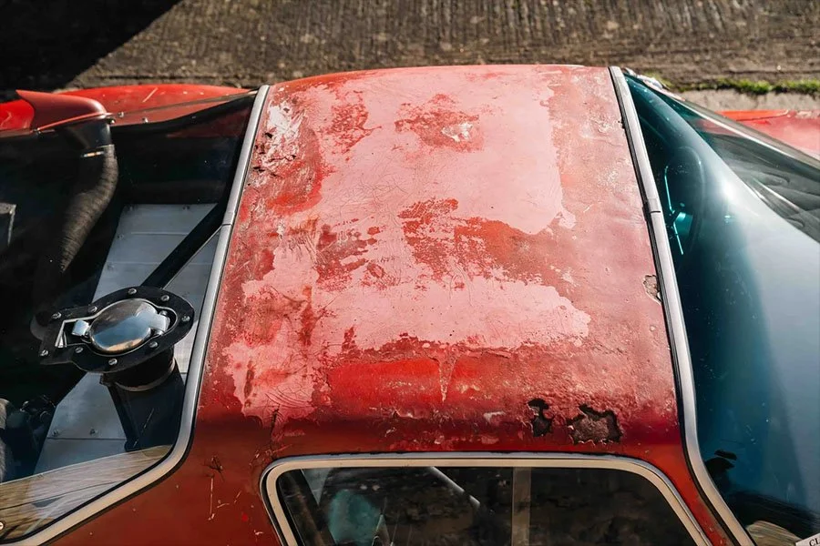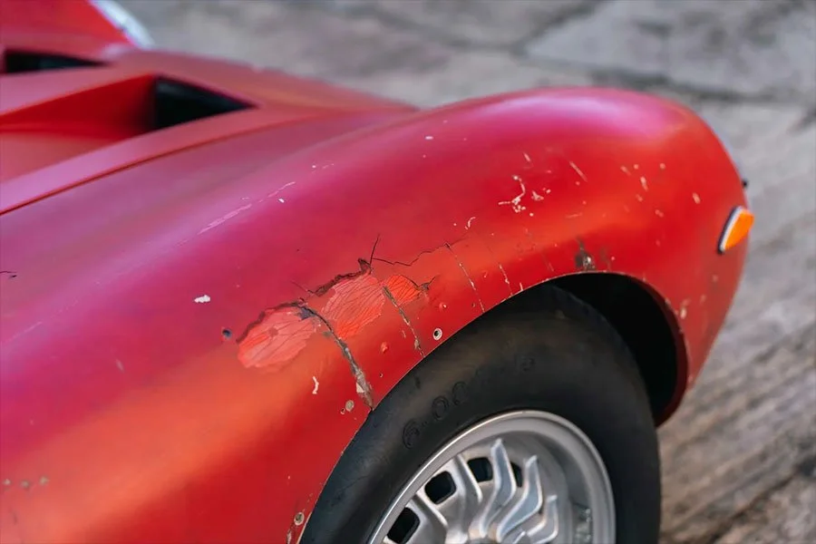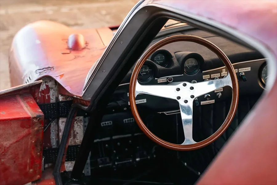 B-0226 would remain in this state with Diomante for around 40 years until the project was restarted, and the car was taken down to a bare chassis. Repairs were made to rectify the slight damage incurred at Zeltweg and great focus was put on preserving the original, battle damaged body.